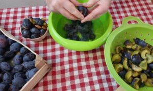 - Priprema: Šljive dobro operite, očistite od koštica i prepolovite (ili isecite na četvrtine ako su krupnije).