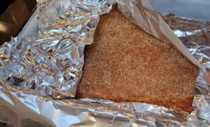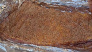 - Pastu ravnomerno natrljaj po celoj površini rebara sa obe strane — dobro umasirati u meso. Umotaj u foliju ili stavi u kesu i ostavi u frižideru minimum 2 sata, idealno preko noći.