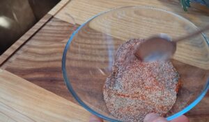 - U manjoj posudi pomešaj 10g mlevenog bibera, 25g belog luka u granulama, 1,5 kašiku soli, 1,5 kašiku ljute paprike, 2 kašike senfa i 1 kašiku suvog origana. Dobro sjedini sve začine u gustu pastu.